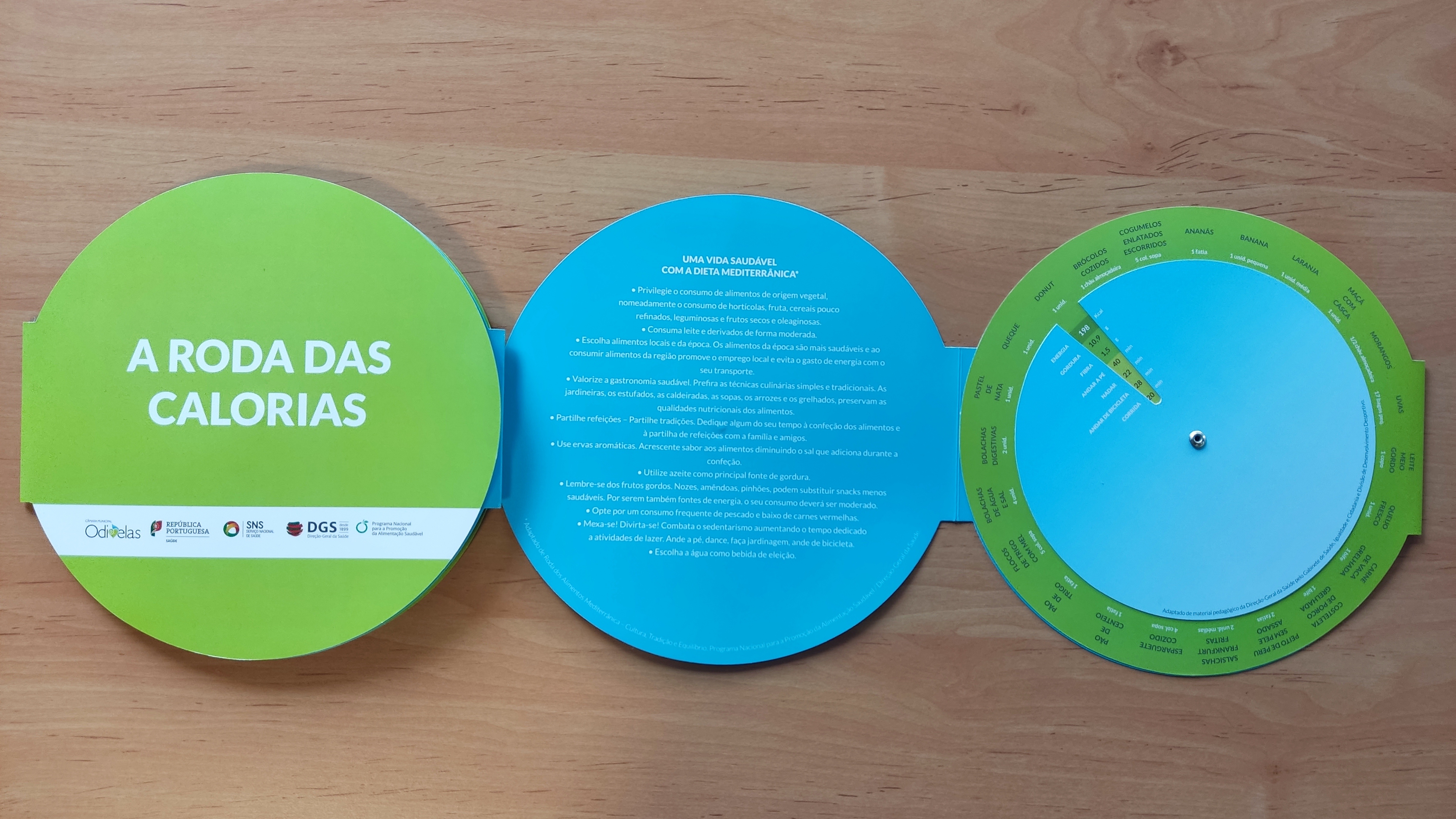 Assim, fruto da colaboração estreita entre a Câmara Municipal de Odivelas e o Programa Nacional para a Promoção da Alimentação Saudável da Direção-Geral da Saúde, foi desenvolvido um material simples, interativo e fácil de usar, que integra alguns conteúdos relacionados com a Dieta Mediterrânica e a atividade física que é necessário realizar para gastar as calorias presentes em alguns alimentos.