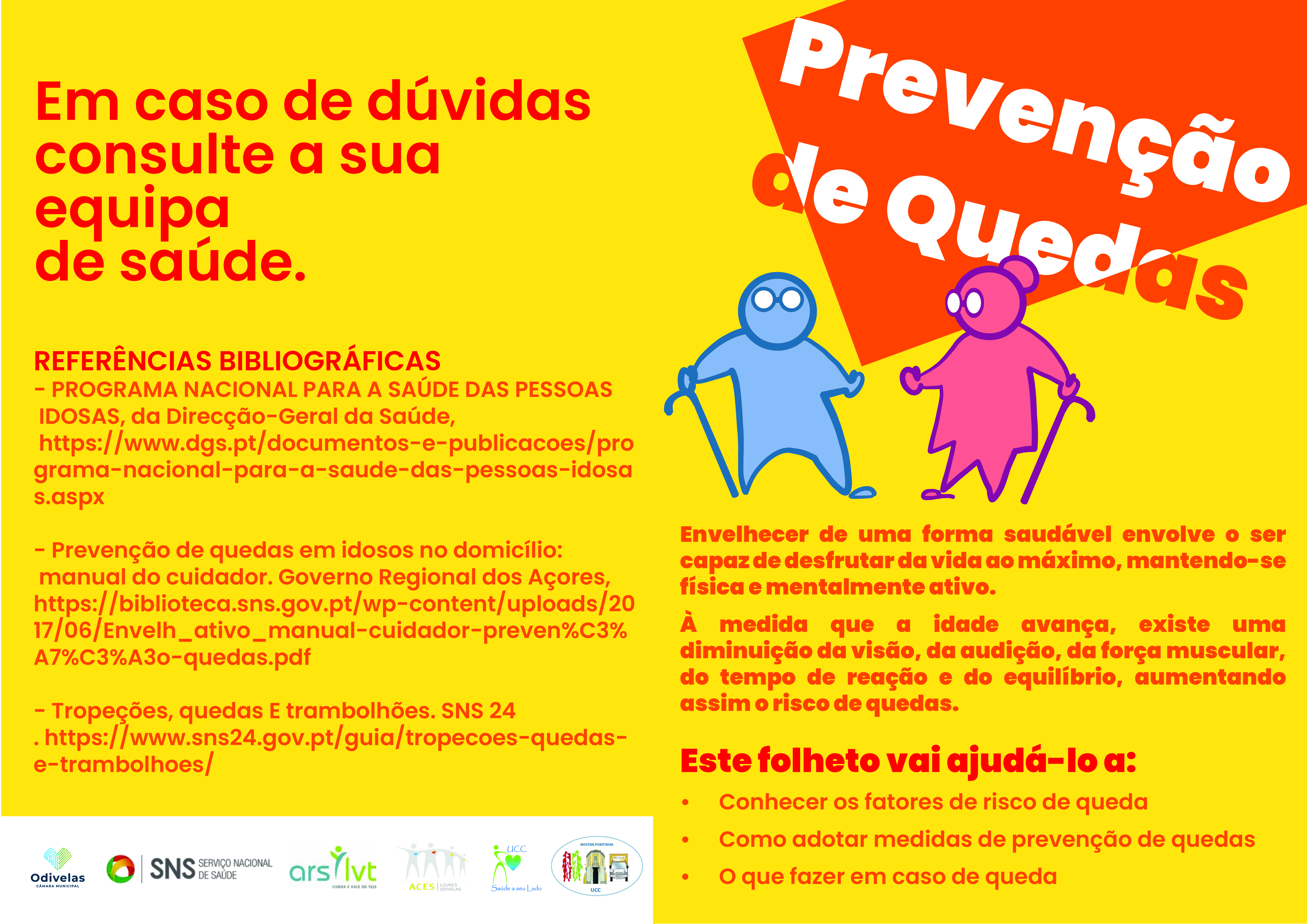Este programa promove a educação para a saúde sénior através de ações de sensibilização, in/formação dirigidas aos/às utentes dos Centros de Dia e Lares da Rede Pública do Concelho de Odivelas, aos/às profissionais que com eles trabalham, aos/às alunos/as do Clube de Movimento, bem como à população sénior do concelho de Odivelas.