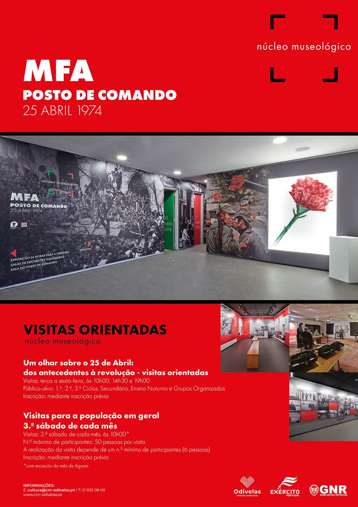 Este marco importante da nossa história contemporânea é o ponto de partida para as visitas orientadas ao Posto de Comando do MFA, procurando-se não apenas a valorização do local, mas também abordar a forma como se vivia antes da Revolução e a importância que este local histórico teve para a concretização da Revolução dos Cravos.