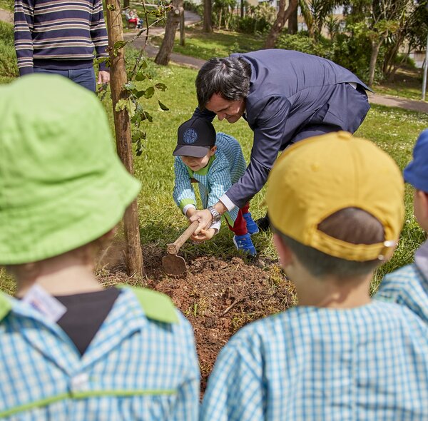 Crianças plantaram alfarrobeiras no Parque Urbano com a ajuda do Presidente da Câmara Municipal.