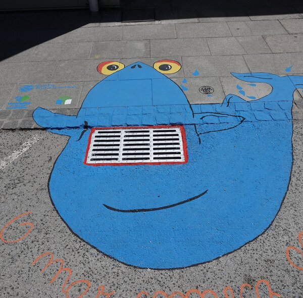 Alunos pintaram muros e sarjetas transformando-os em mensagens de preservação da natureza.
