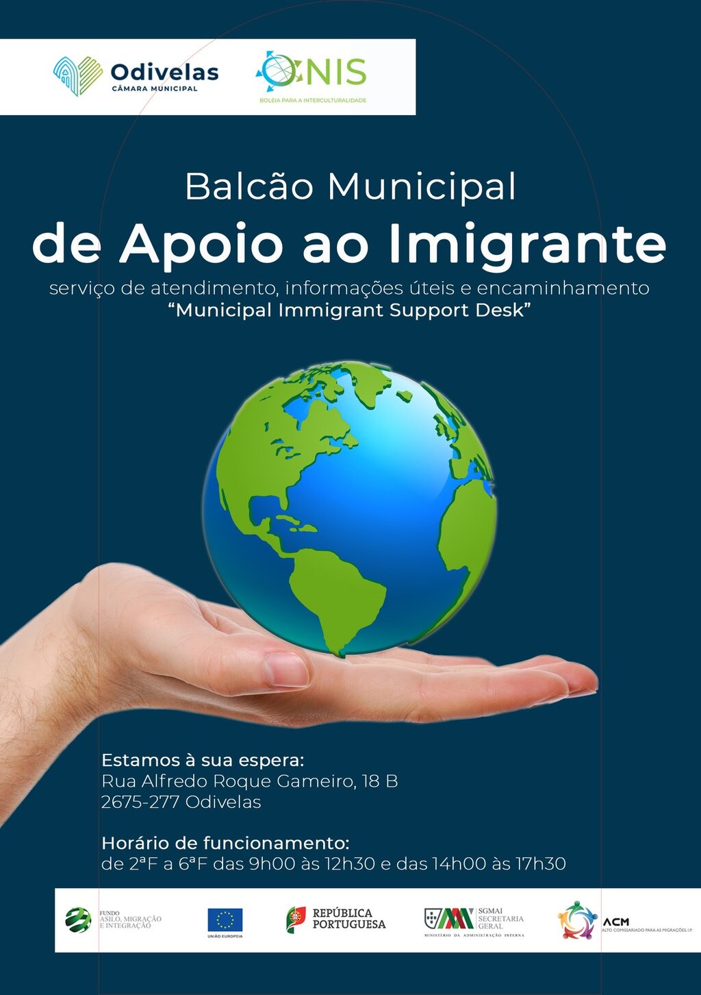 O Balcão Municipal de Apoio aos Imigrantes em situação irregular integra o Plano Municipal para a Integração dos Migrantes, ao abrigo do projeto “ÓNIS_ Boleia para a Interculturalidade”, cofinanciado pelo Fundo para o Asilo, a Migração e a Integração (FAMI) 2019.