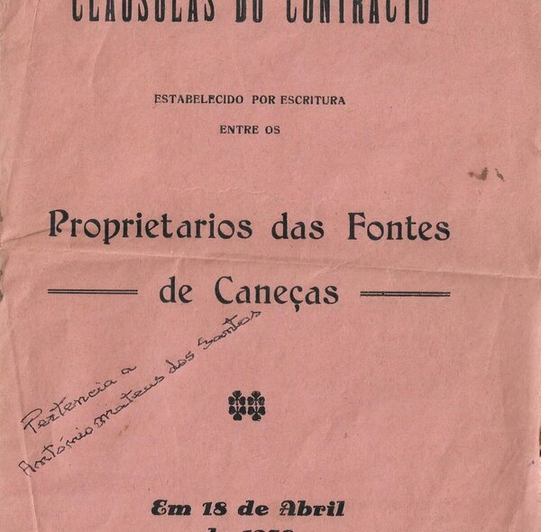 Neste mês destaca-se o contrato entre os proprietários das Fontes de Caneças, estabelecido em 1938.