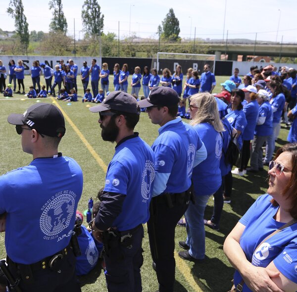 O Campo da União Desportiva e Recreativa de Santa Maria transformou-se num enorme laço azul humano.