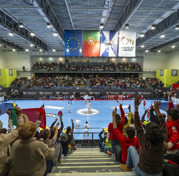 Pavilhão Multiusos lotado na vitória da Seleção Nacional.