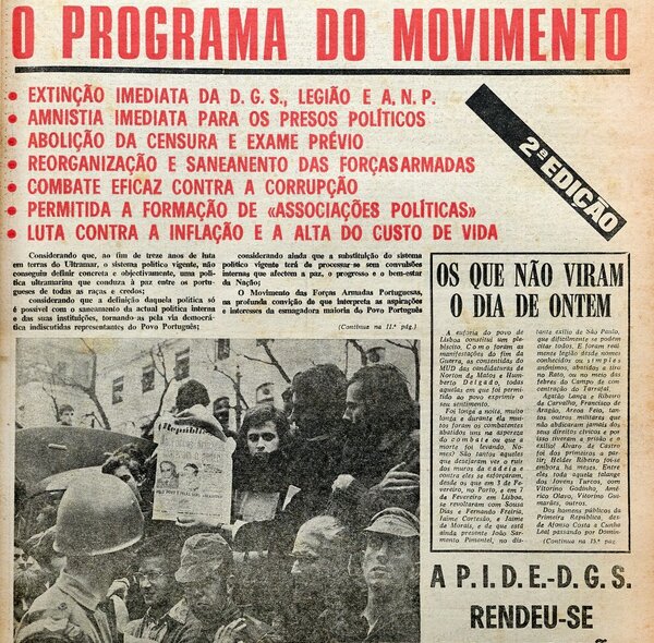 Reprodução da capa e do artigo da edição de 26 de abril de 1974 do jornal «A CAPITAL» está exposta nos Paços do Concelho.