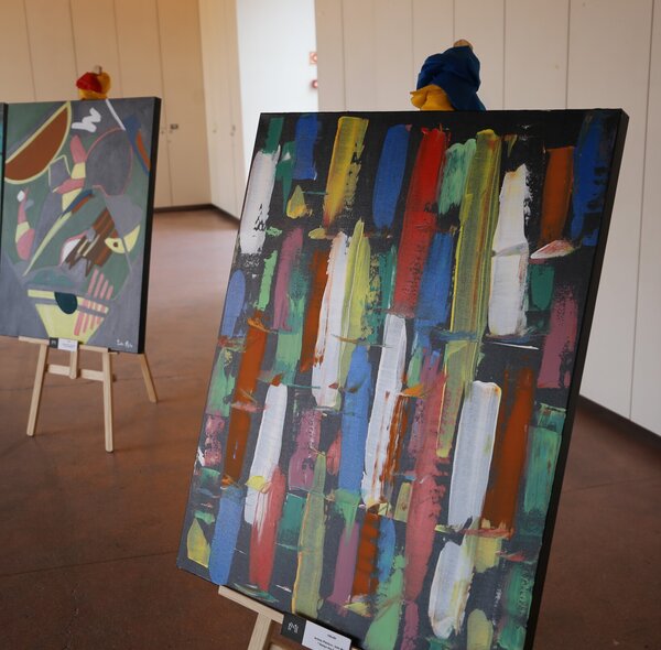 Trabalhos da jovem artista Inês Melo expostos na Casa da Juventude de Odivelas.