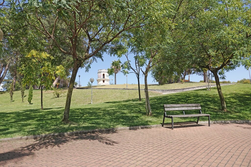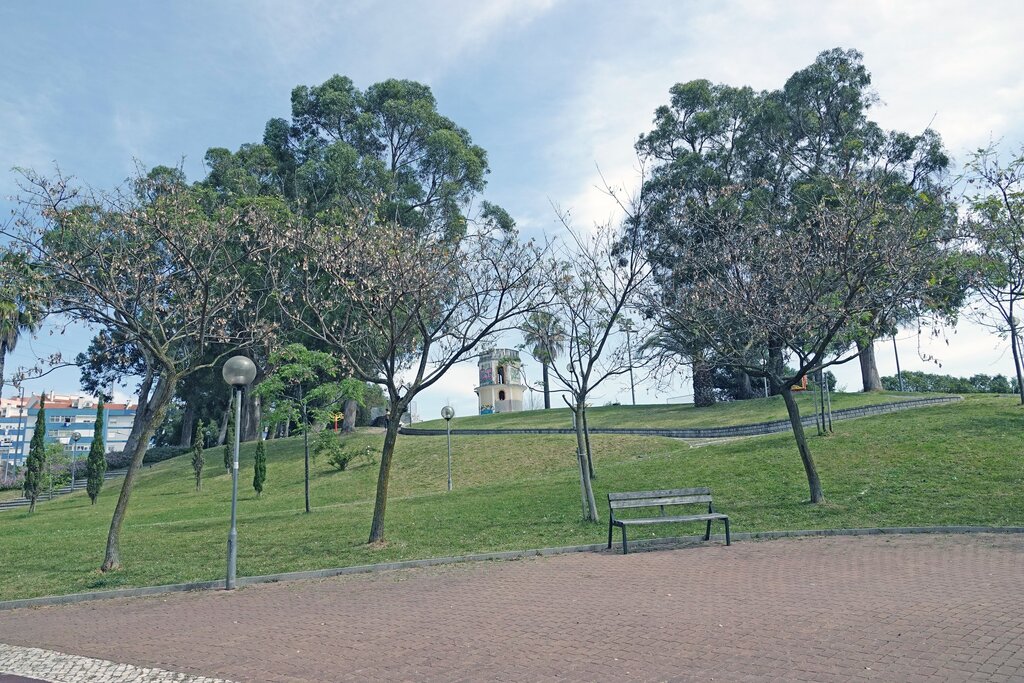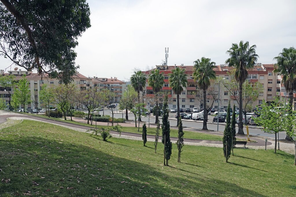 Jardim localizado no centro de Odivelas com uma vasta área de lazer com diversas árvores, bancos e equipamentos de manutenção bio saudáveis.